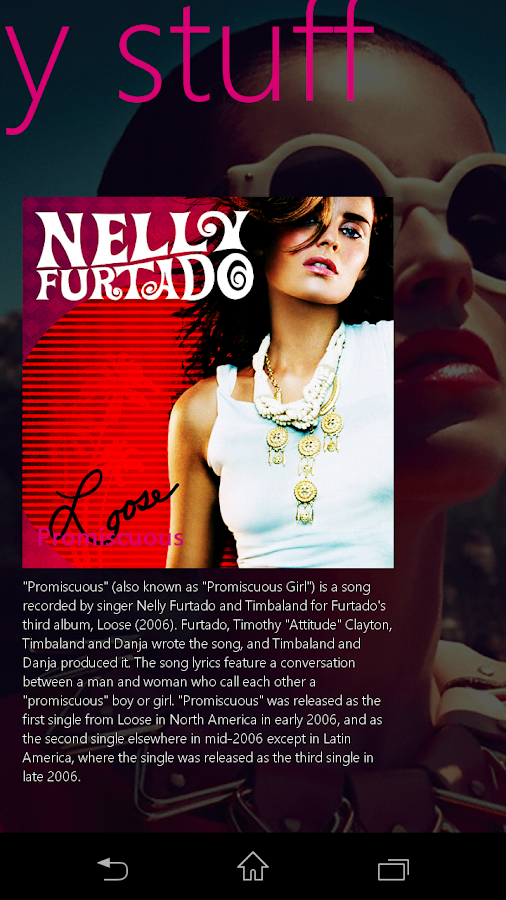 Cómo críticas de álbumes, biografías de artistas, mejores pistas, listas de reproducción, artistas relacionados y podcasts (audio / video) todo en una sola aplicación. + deslizar la pantalla de inicio a la izquierda / derecha muestra la canción 'reproducción actual "y la historia de escucha.
