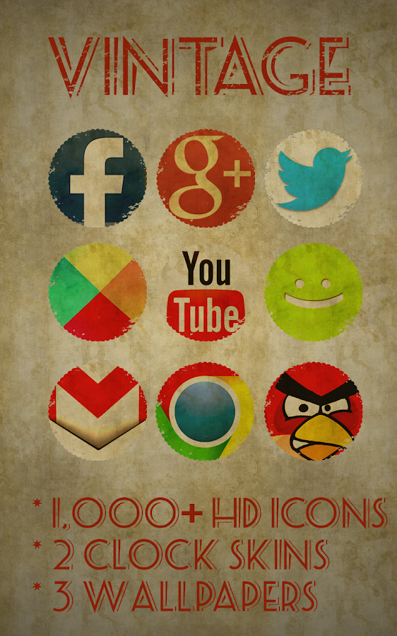 superior de cada icono. Perfecto para los usuarios que les gusta Vintage